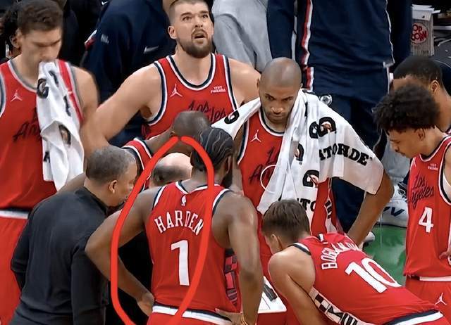 最后2秒钟,也就是说过去19秒哈登轰下9分,这个时候凯尔特人也是叫了最后的暂停。快船这边已经没有暂停,他们也是提前布置好最后一攻的战术安排,只不过主教练泰伦卢并没有拿起战术板,反而是助理教练范甘迪坐在球员面前,不断布置着。快船肯定是准备了2种方案,一种是凯尔特人两罚全中,另一种就是最后一罚故意不中。